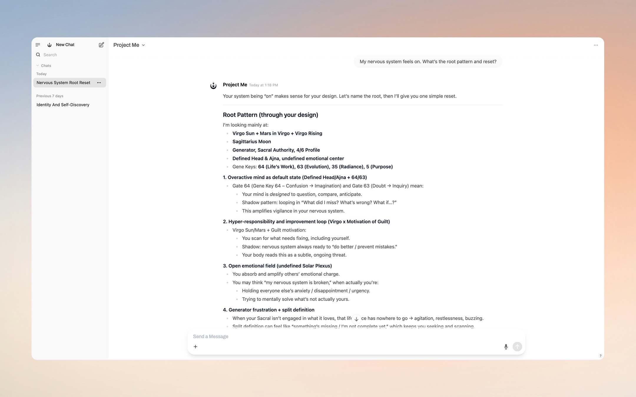 Project Me helps you connect the dots between what’s happening now and what’s been unfolding over time, so your experiences start to make sense, not just feel heavy.